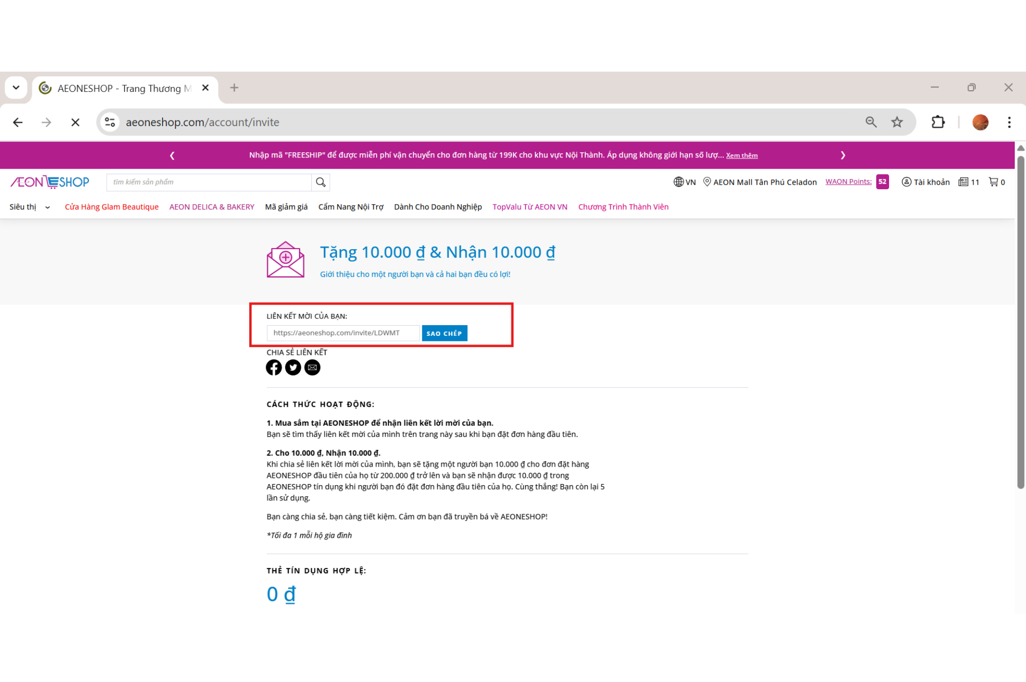 - Gửi link cho bạn bè chưa từng mua sắm tại AEONESHOP