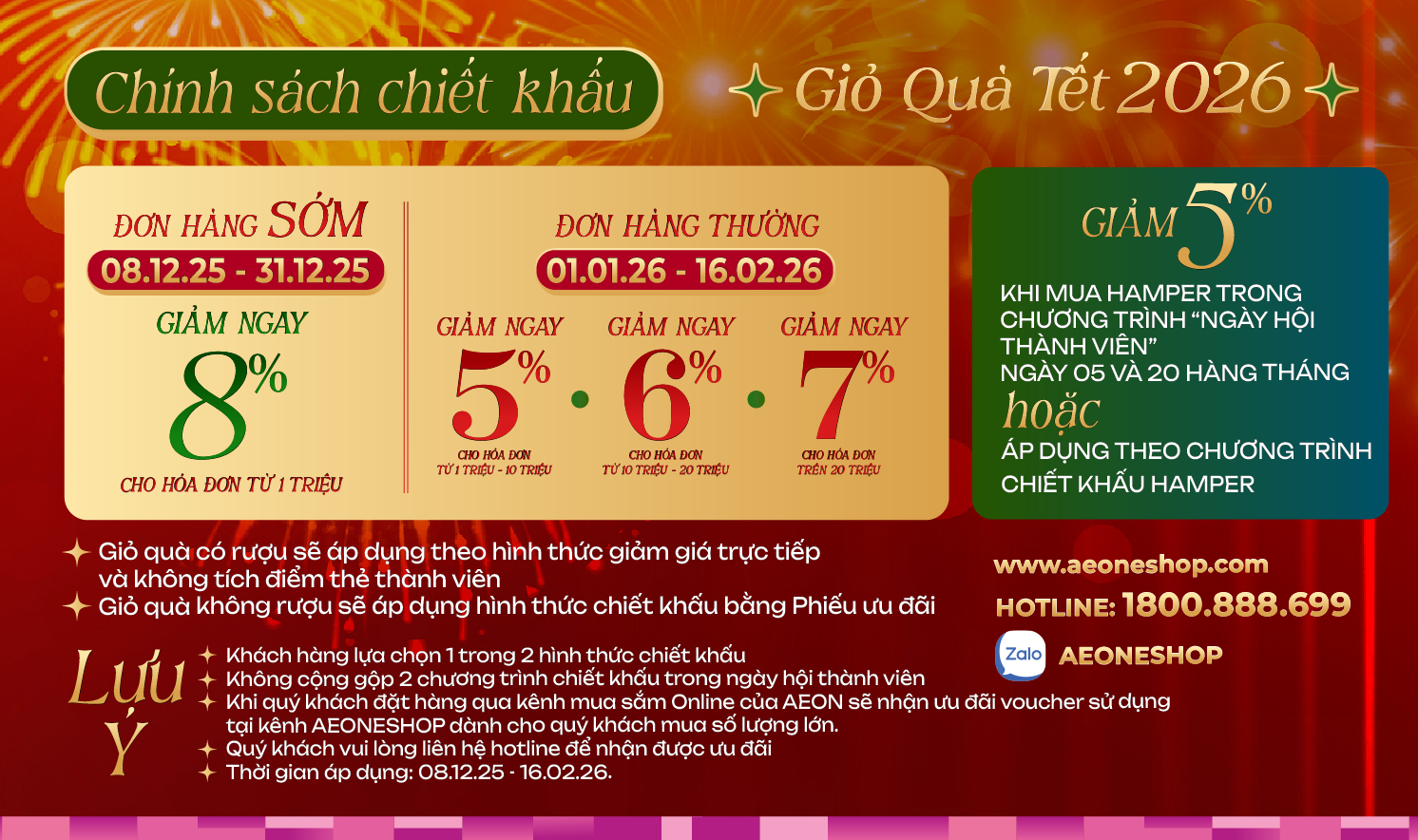 AEONESHOP là Trang thương mại điện tử chính thức của AEON Việt Nam. Liên hệ với chúng tôi qua Hotline: 1800 888 699 hoặc...
