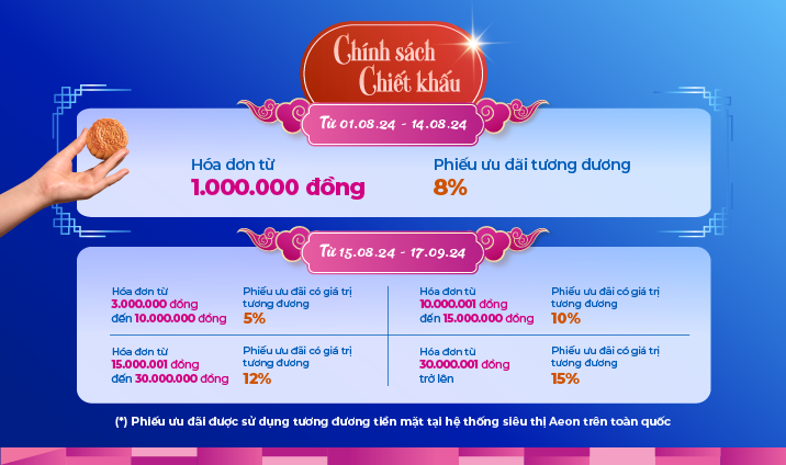 Bạn thân mến! Một mùa Đoàn viên nữa lại đến! Vào mùa trăng năm nay, AEONESHOP mang tới cho quý khách hàng cùng gia đình những lựa chọn bánh trung thu chỉn chu nhất về chất lượng, mẫu mã cho đến hương vị, từ nhiều thương hiệu sản xuất uy tín trong và ngoài nước. Hãy để AEONESHOP giúp bạn gửi thành ý, trao yêu thương vào dịp Tết Trung Thu 2024 này nhé! Đặt bánh trung thu Online, nhận ngay tại nhà cùng AEONESHOP!