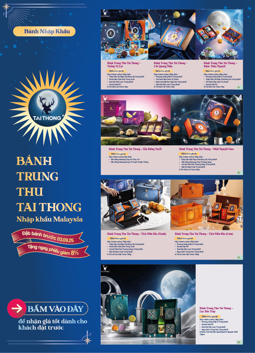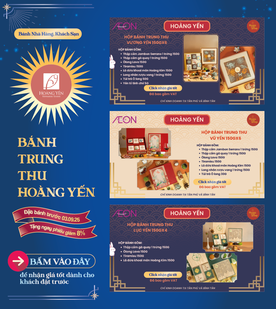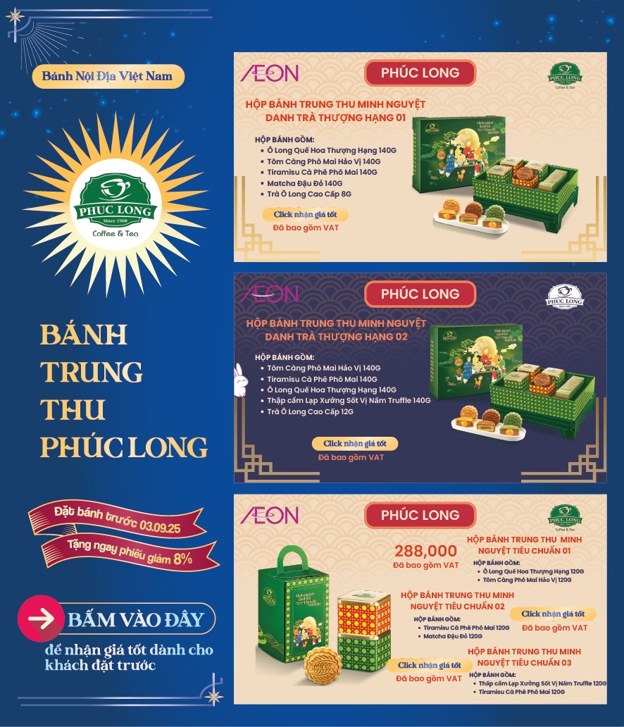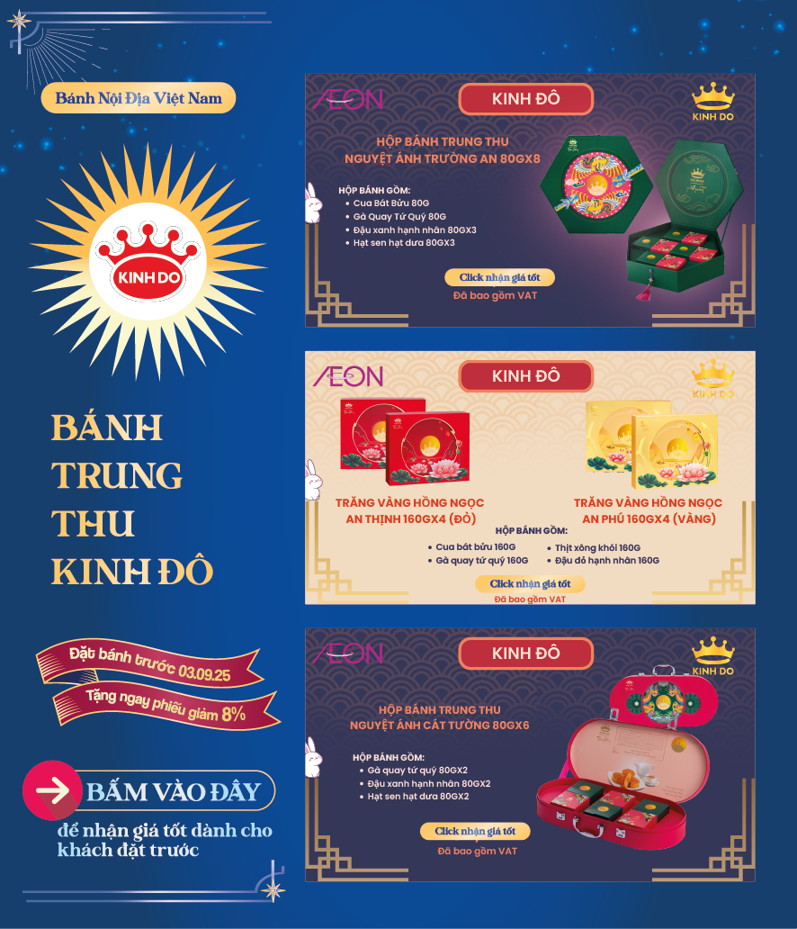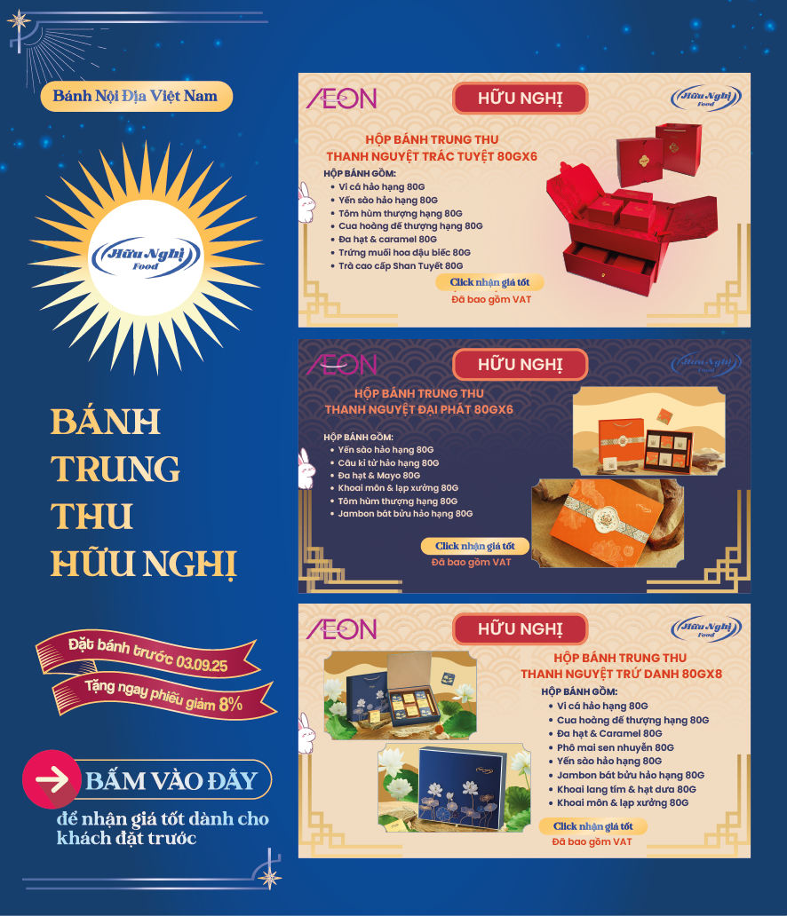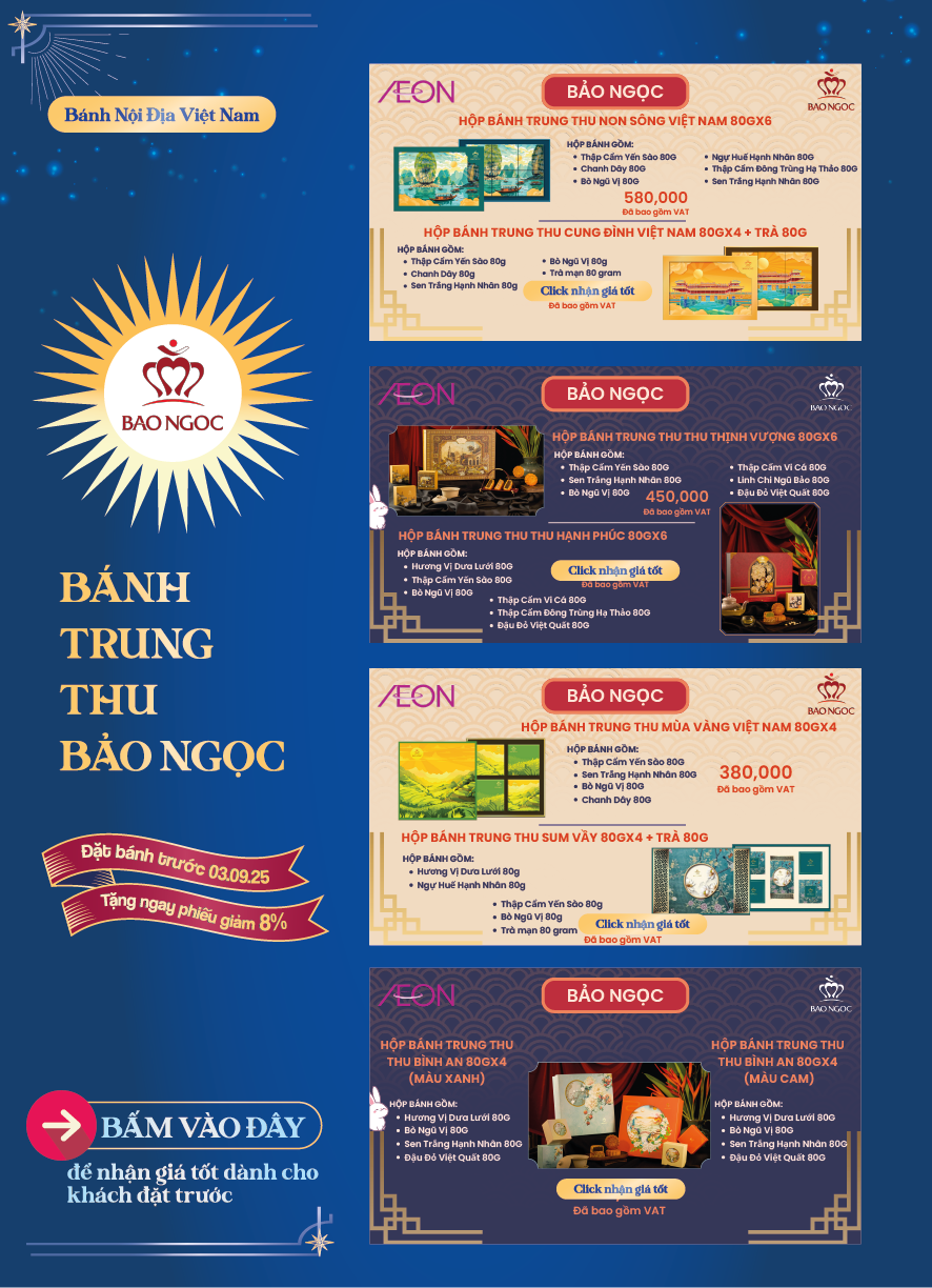Tháng 8 trăng rằm, gửi gắm tâm tình qua những hộp bánh thơm ngon là nét đẹp văn hoá mỗi mùa Trung Thu. Và mỗi hộp quà là một lời chúc khác biệt, một sự trân trọng dành riêng dành cho những mối tâm giao. 🪐 Hiểu được điều đó, AEON mang đến cho quý khách hàng BST Bánh Trung Thu 2025 với nhiều lựa chọn hấp dẫn.