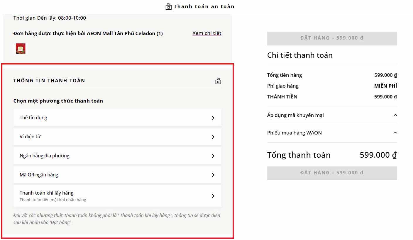 - Địa điểm áp dụng/ Location: Cổng thang toán Payoo trên website/app AEONESHOP